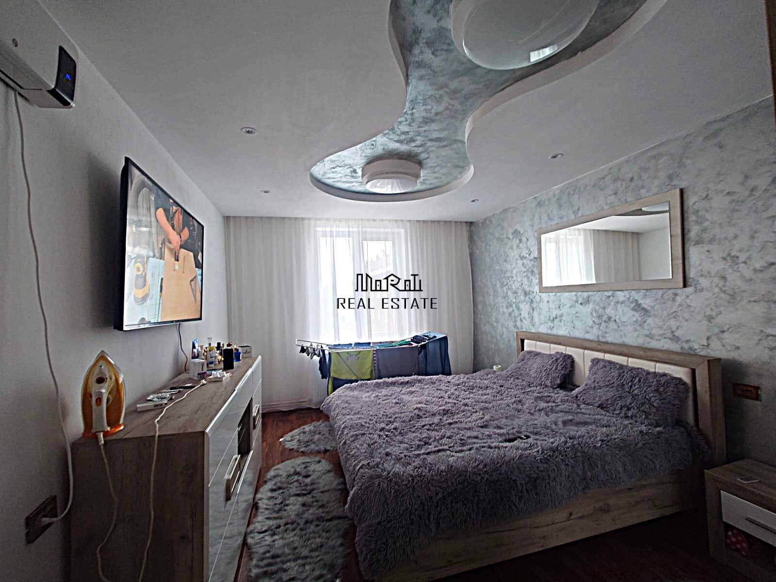 Apartamentul este renovat si are o compartimentare functionala, compusa din doua camere, doua bai (baie principala si baie de serviciu), bucatarie, balcon inchis, debara si boxa pentru depozitare. Interiorul este amenajat cu mobilier modern, bucataria este complet utilata, iar baia este dotata cu cada cu hidromasaj. Este o locuinta luminoasa si bine intretinuta, ideala pentru o familie sau pentru investitie. Reteaua de calorifere este deja instalata, fiind pregatita pentru montarea unei centrale termice, in functie de preferinta noului proprietar.